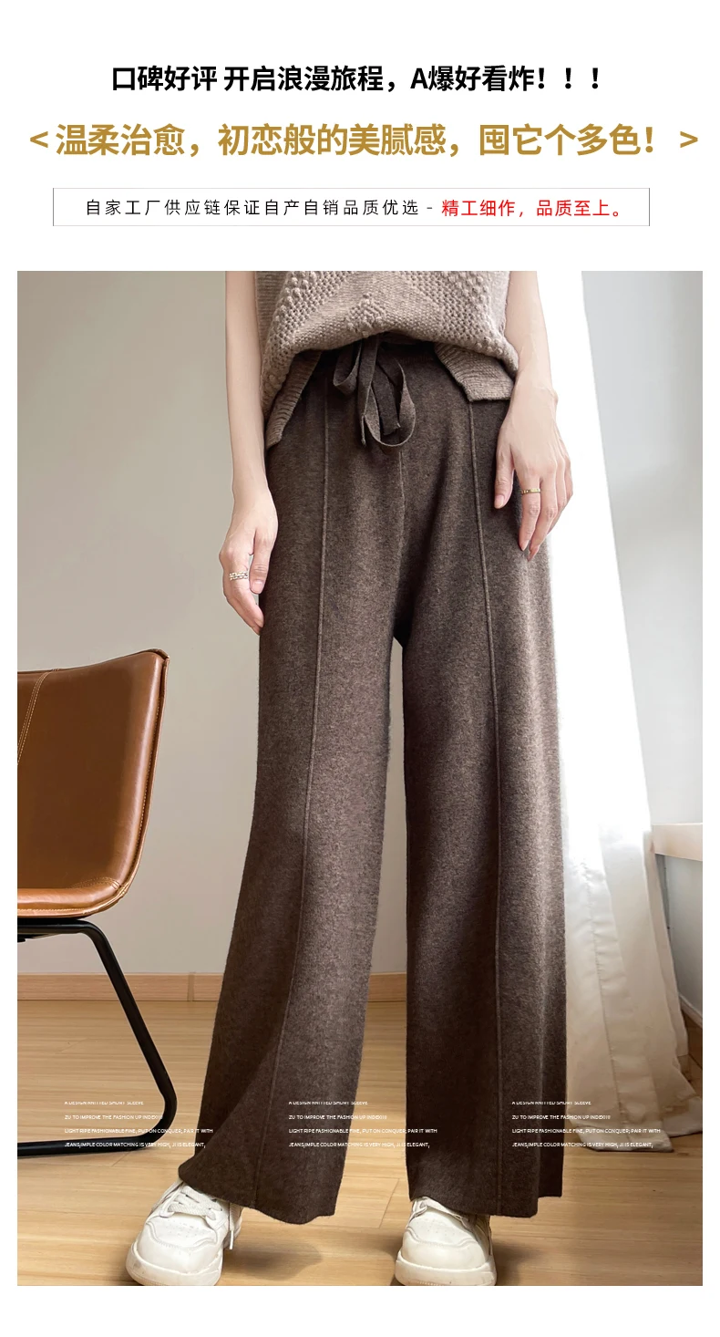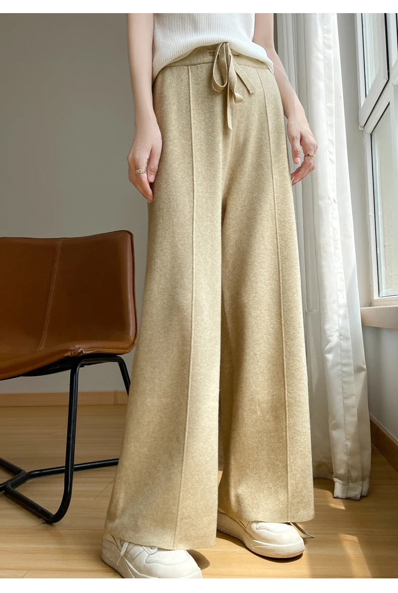 Very nice! I might buy again for a darker colour. The material is very soft and thick (but not heavy). The tag on the pants says it's 85% cashmere and 15% tencel. (Because there are synthetics that feel a lot like cashmere and other wools), I did a burn test on some of the threads to check and it showed that the majority of the material is natural.) Suitable for fall, winter, and spring weather. Note for people deciding on the right size: I'm 167 cm tall (5'6"), 120 lbs, The XXL size is the right waist size (without needing the drawstring) and length is ok for me, but because of the design of the pants having a low crotch seam, I fold the waistband over. Very fast shipping.