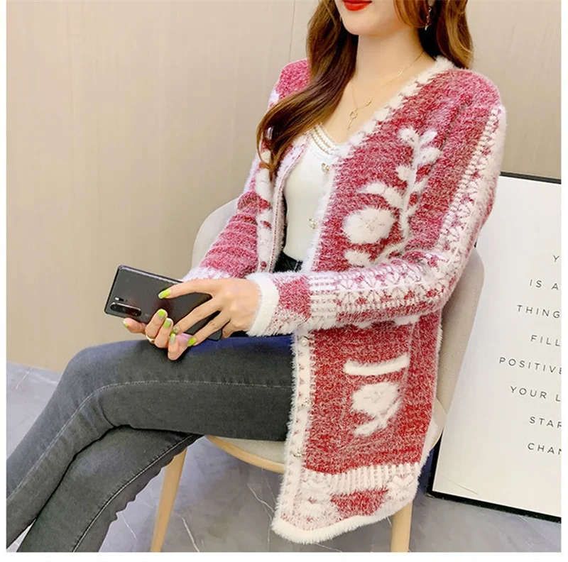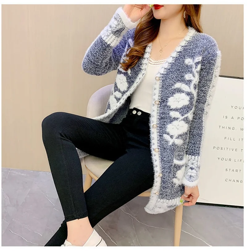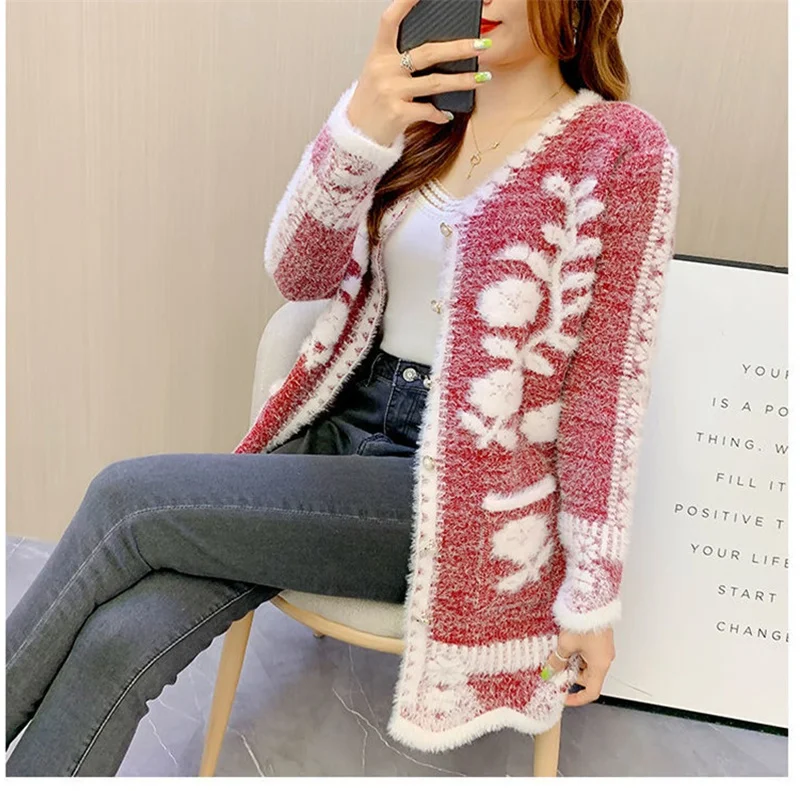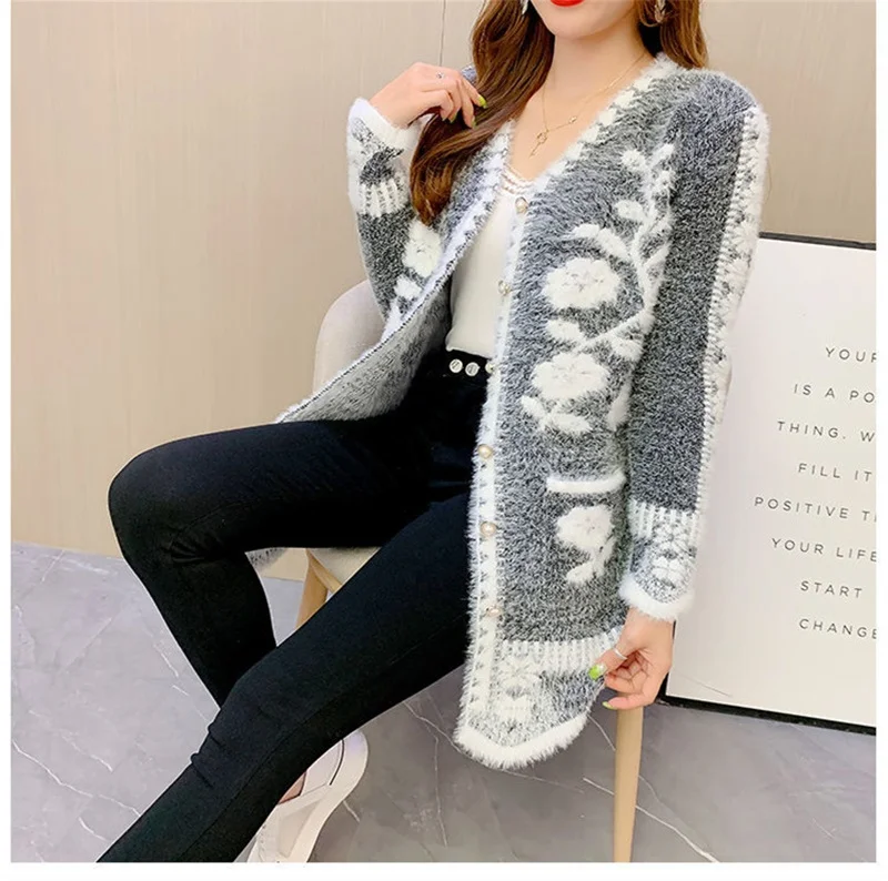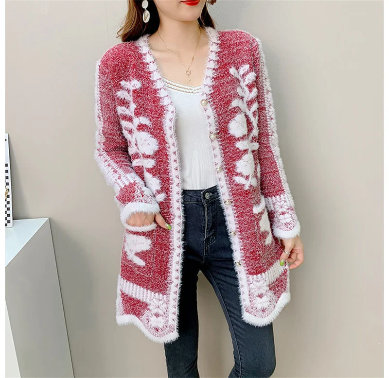 2025 New Winter Cardigan Sweater Women's Mid-length Buttons Sexy Slim Imitation mink cardigan Jacket Female Knitted Sweater Tops