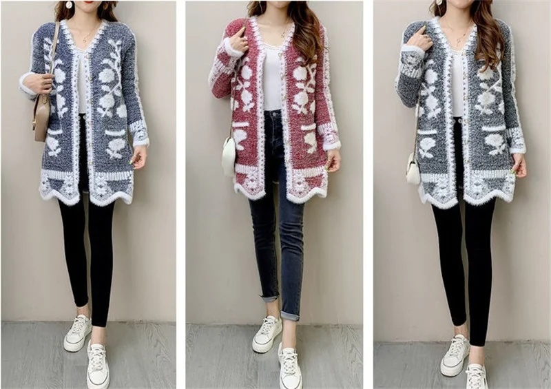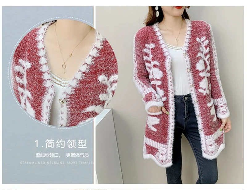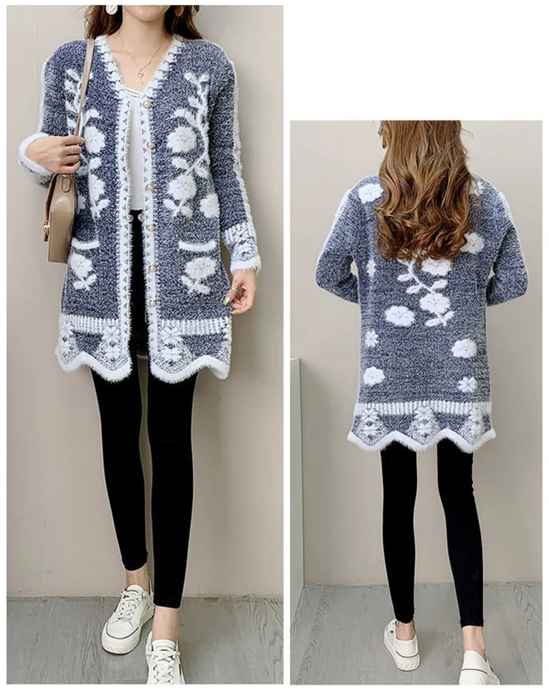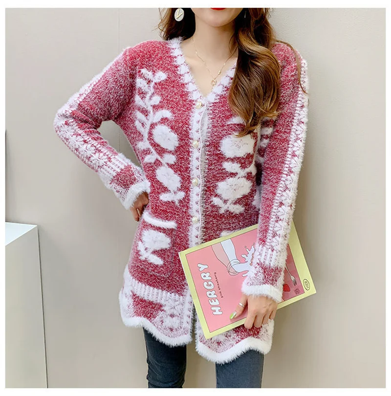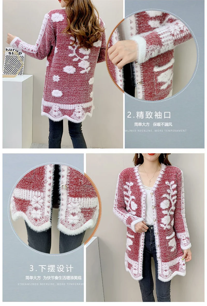 2025 New Winter Cardigan Sweater Women's Mid-length Buttons Sexy Slim Imitation mink cardigan Jacket Female Knitted Sweater Tops