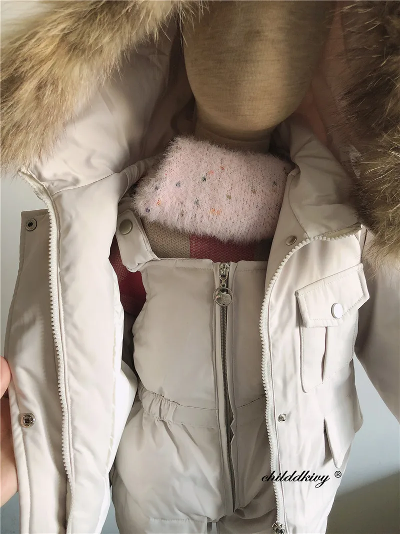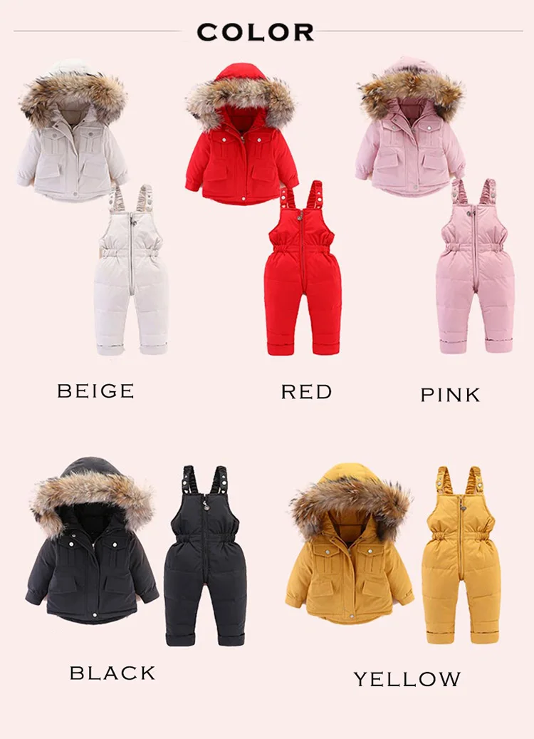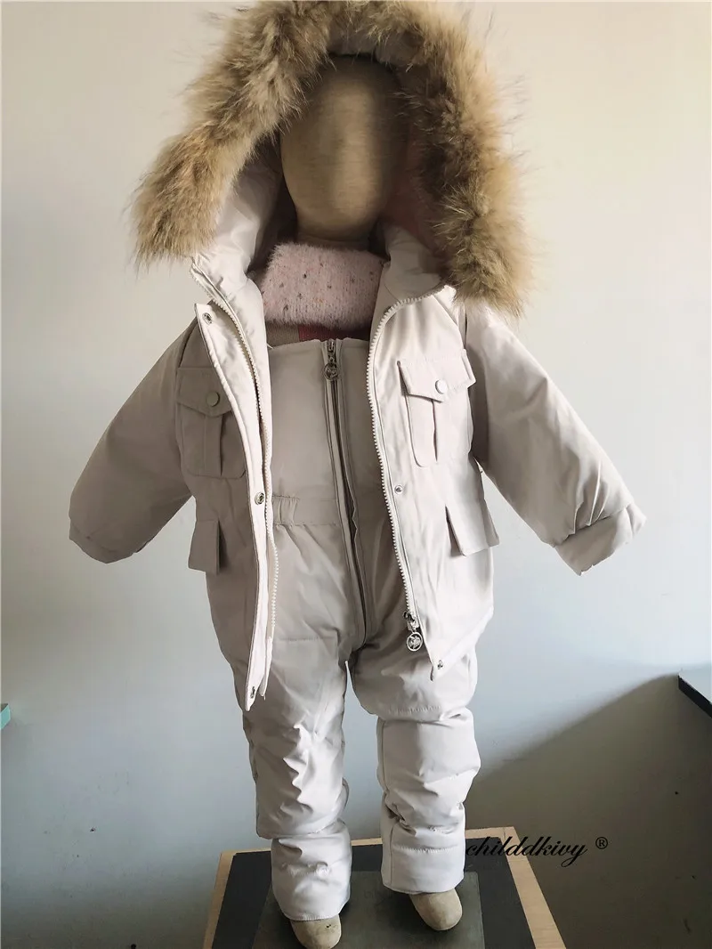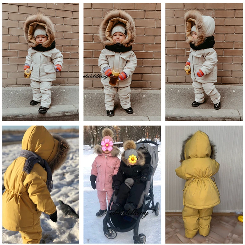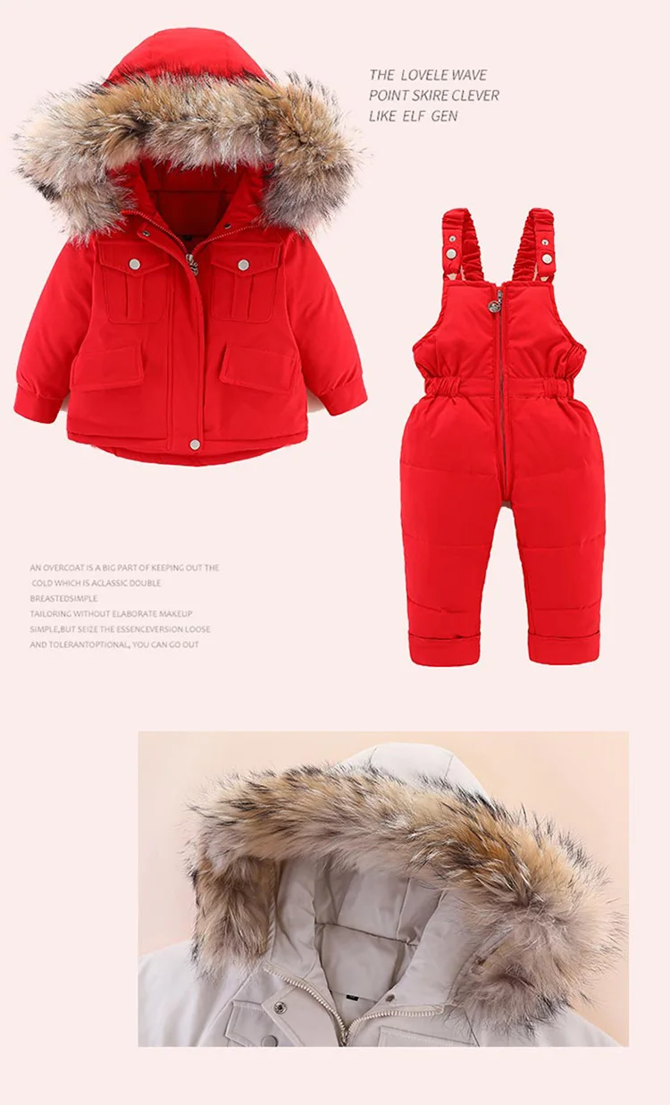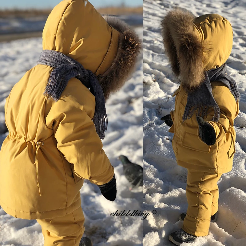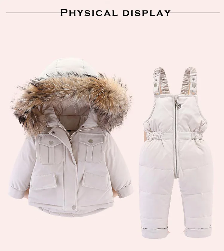 2pcs Set Children Winter Down Jacket and Jumpsuit for Baby Thicken Jacket for Girls Coat Warm Real Fur Collar Boys Snowsuit 0-4Y