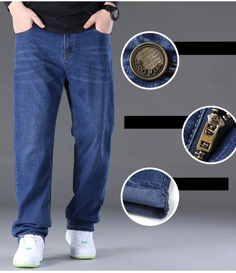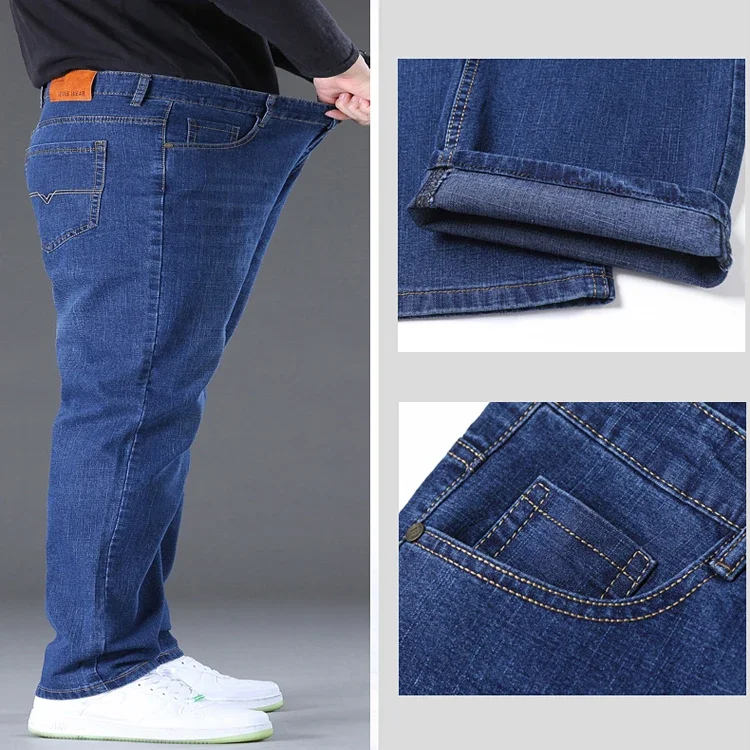 Big Size Men’s High Stretch Denim Jeans – Wide Leg Fit, Suitable for 45-150kg