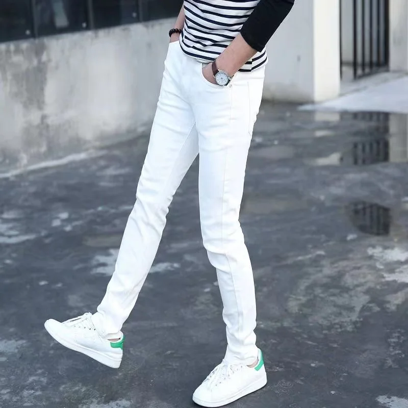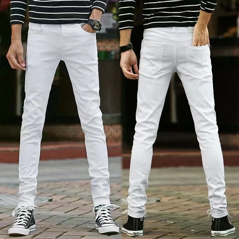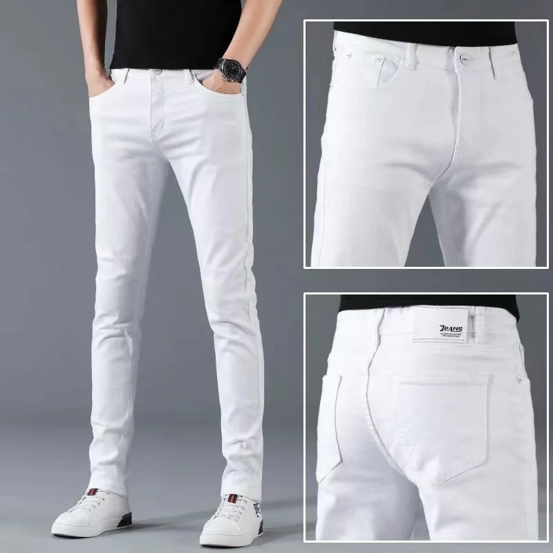 Men’s Slim Fit Stretch Denim Jeans – High Quality Skinny Black & White, Four Seasons