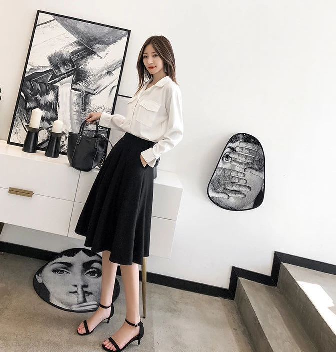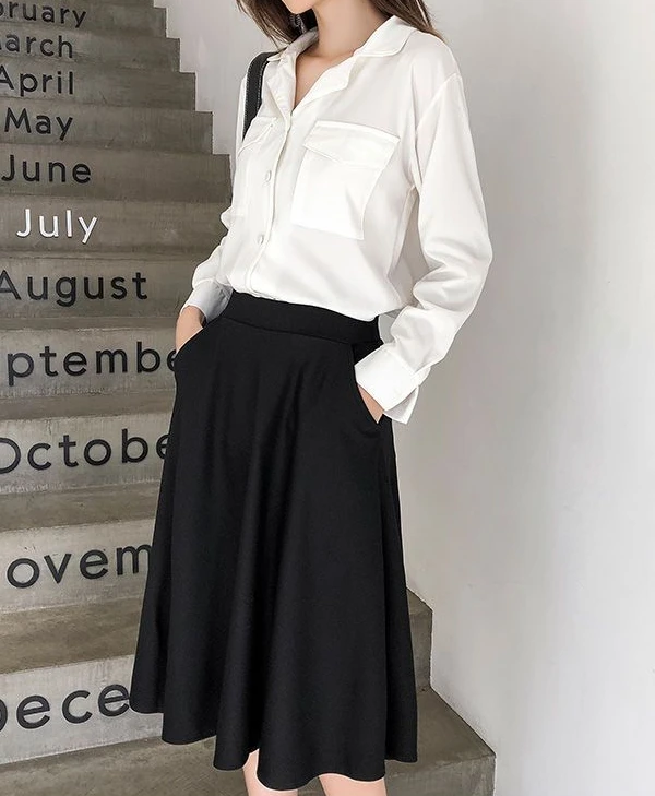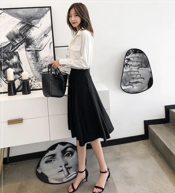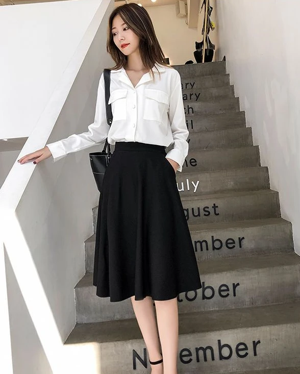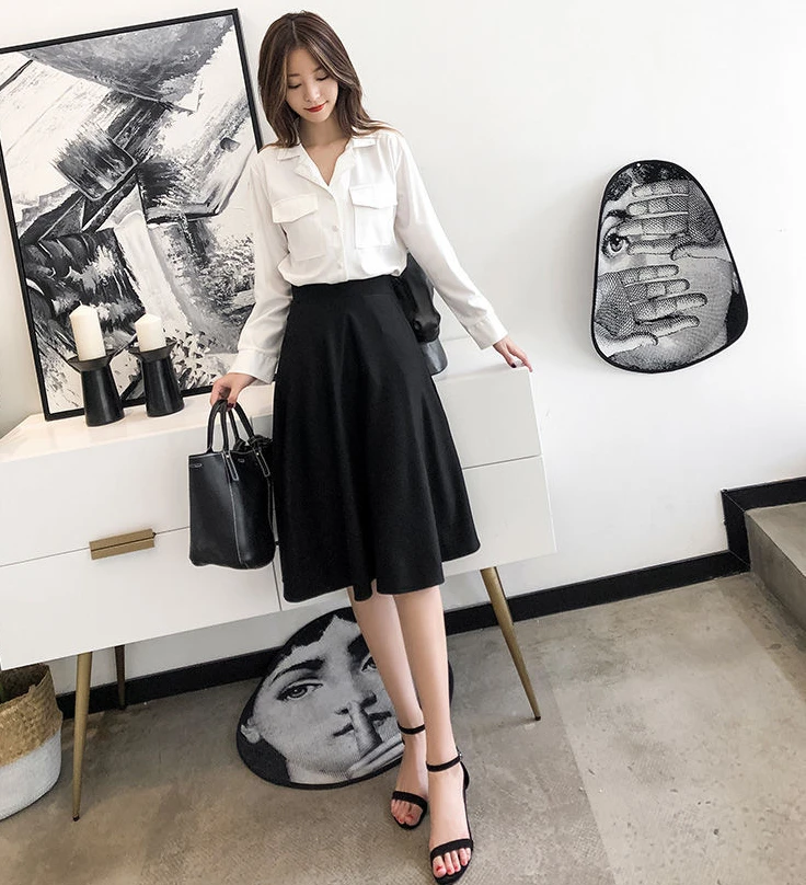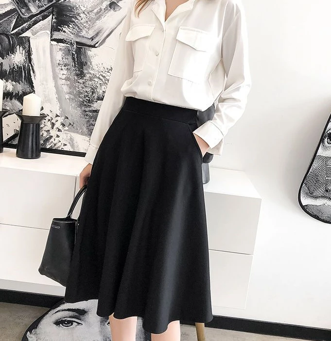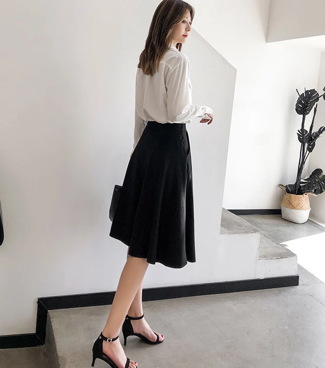 Women’s Knee-Length Ruffle Skirt – Elastic Waist, Korean Fashion, Chic & Elegant Style