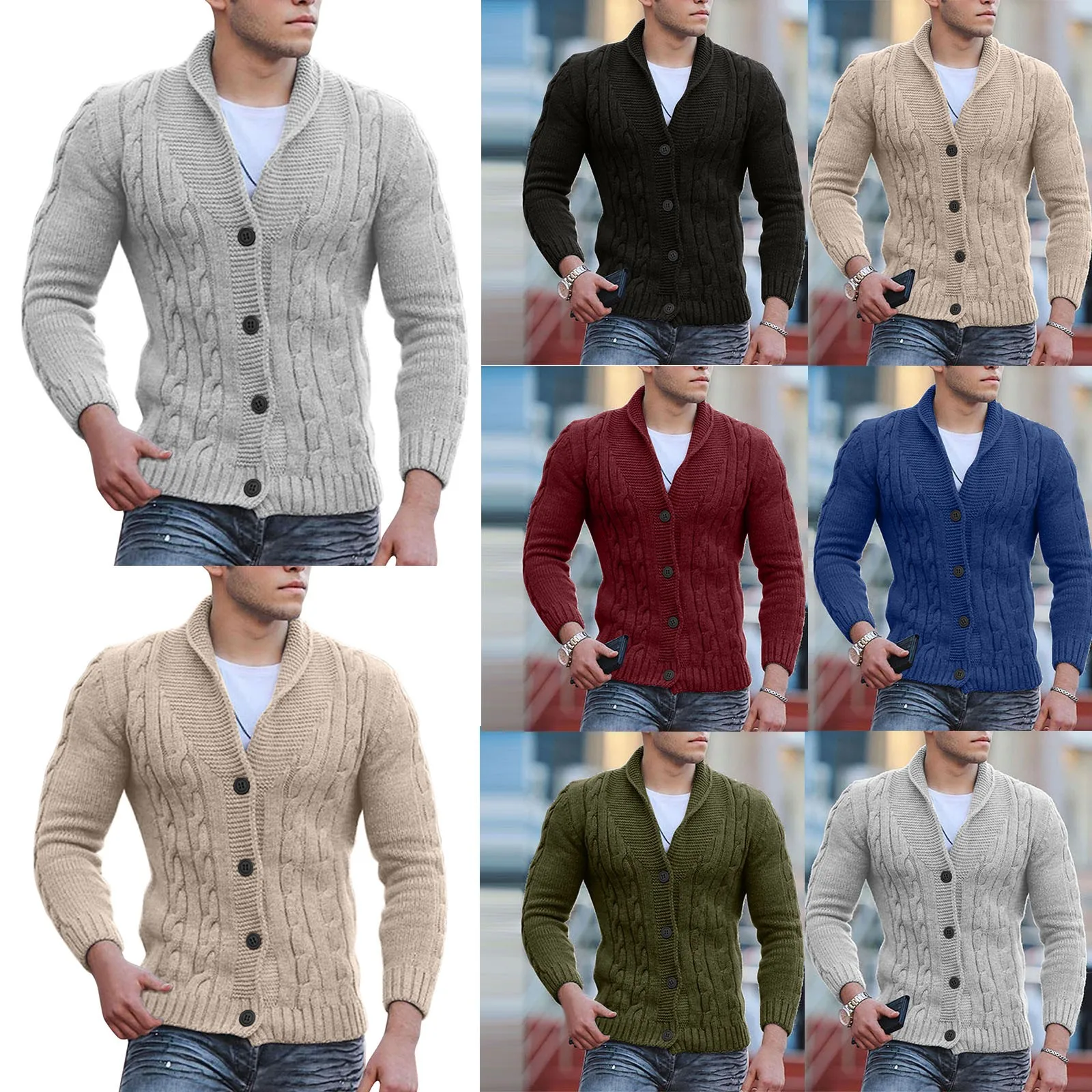 Men’s Solid Color Knit Cardigan Sweater – Shawl Collar, Loose Fit, Long Sleeve Single-Breasted Design for Autumn Fashion