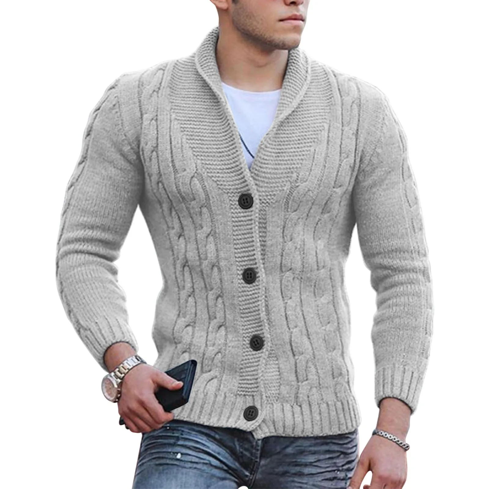 Mens Cable Knit Cardigan Sweater Shawl Collar Loose Fit Long Sleeve Casual Cardigans
