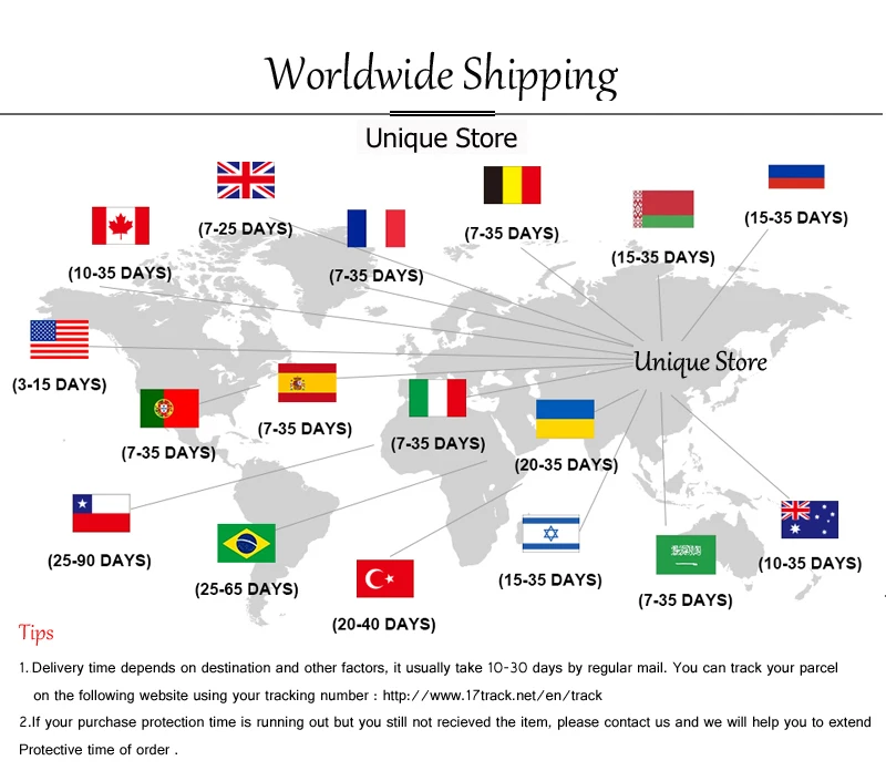 Free Worldwide ShippingWe are proud to offer international shipping services that currently operate in over 200 countries and islands world wide. Nothing means more to us than bringing our customers great value and service. We will continue to grow to meet the needs of all our customers, delivering a service beyond all expectation anywhere in the world.