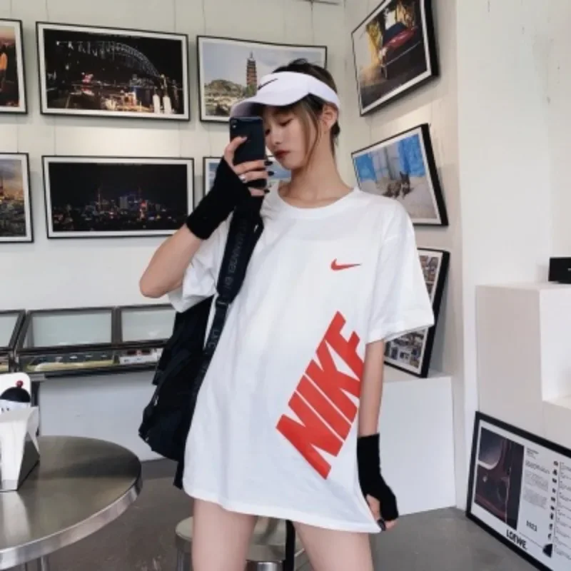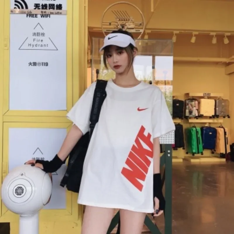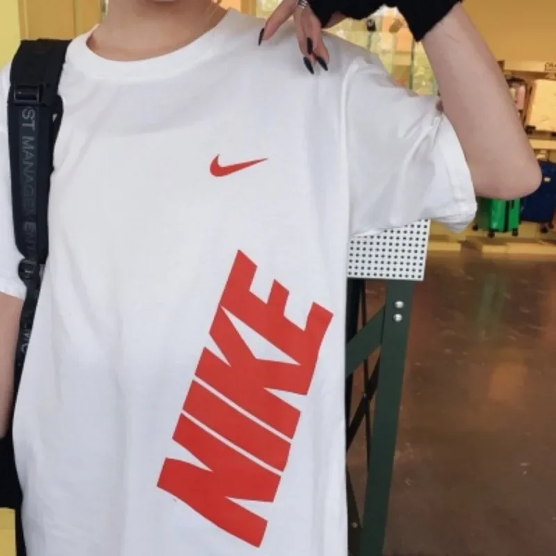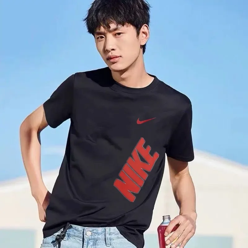 Nike Black & Red Oversized Unisex T-Shirt – Casual Sportswear, Spring/Summer Short Sleeve, M-5XL