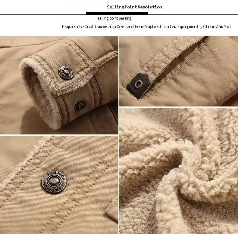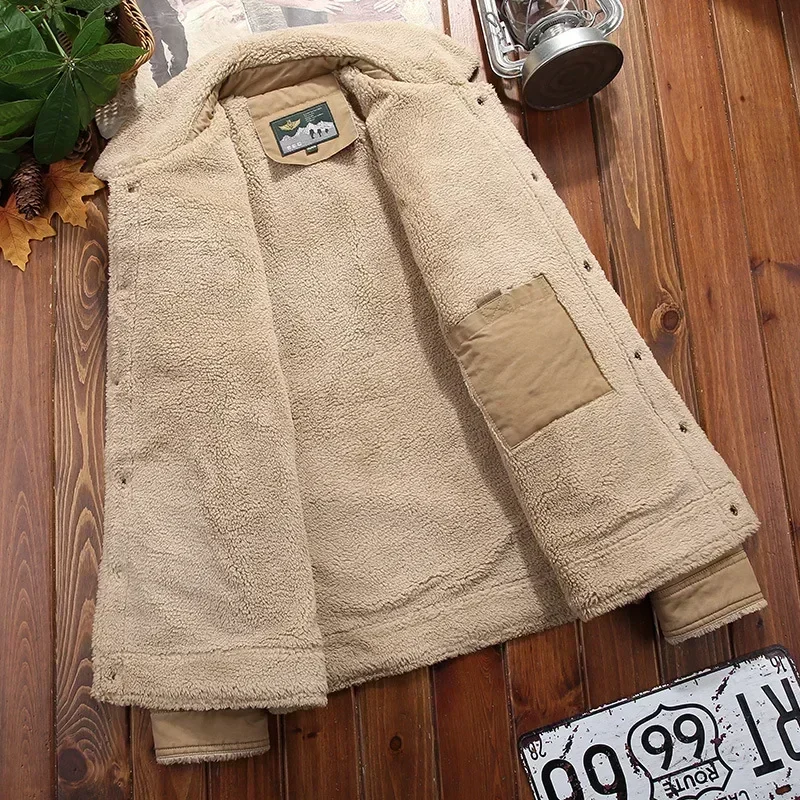 Men’s Fleece Bomber Jacket – Windbreaker, Thick Warm Parka, Military Style with Fur Collar