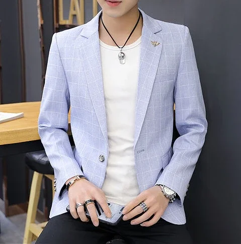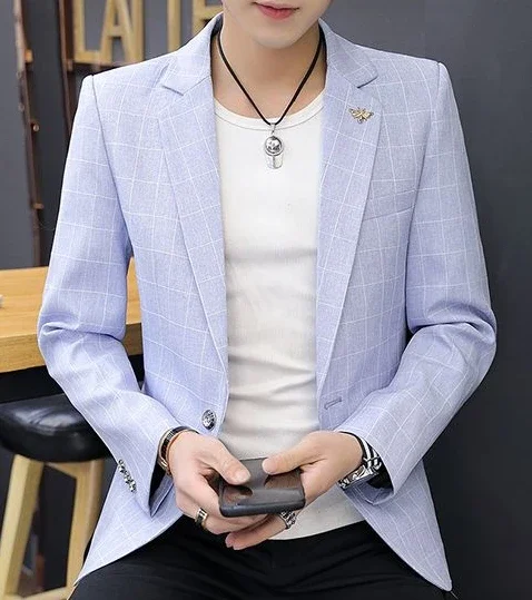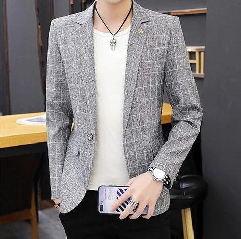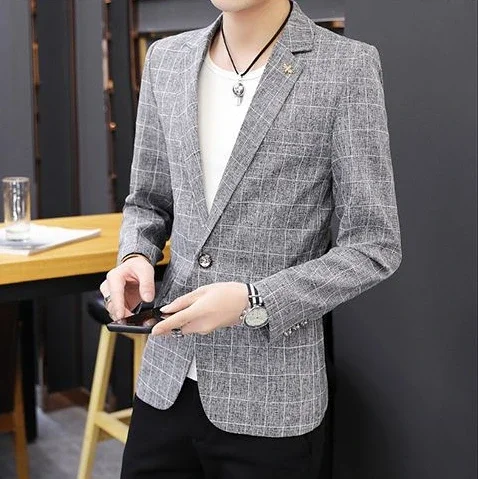 Men’s Linen Gray Suit Jacket – Single-Breasted Blazer, Casual Party Coat