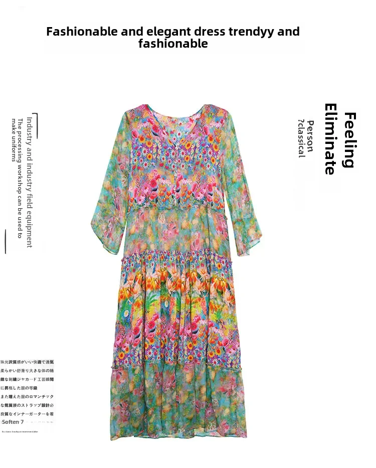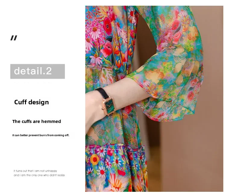 • High-End Mulberry Silk Material :Crafted from high-end mulberry silk, this dress offers a luxurious feel and elegant sheen, perfect for spring seasons.