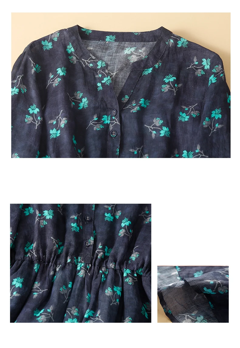 Women Vintage Floral Print Midi Dress 2024 New Summer V-Neck High Waist Sundress Female Casual Holiday Beach Dresses Robes